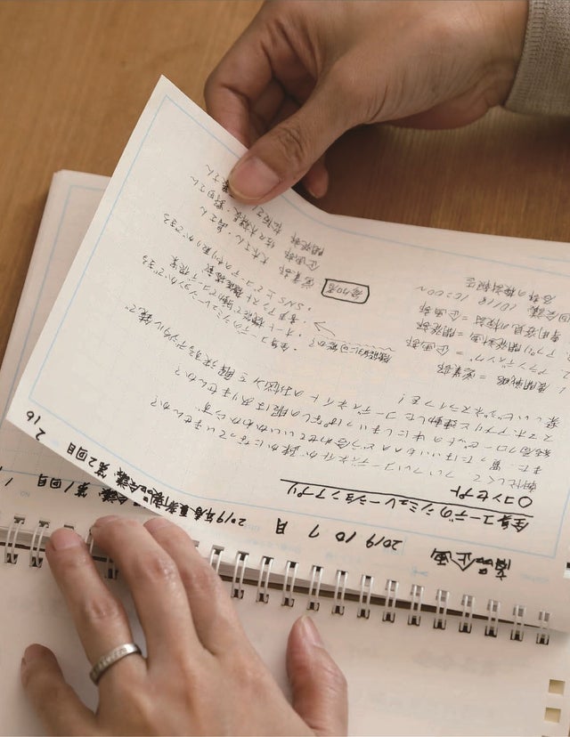 切り取ったノートをテーマ、タイトル別にファイルにツヅル。1マスずらして時系列にハッキリ、スッキリ一目瞭然。必要な時に欲しい情報を簡単に活用できる。