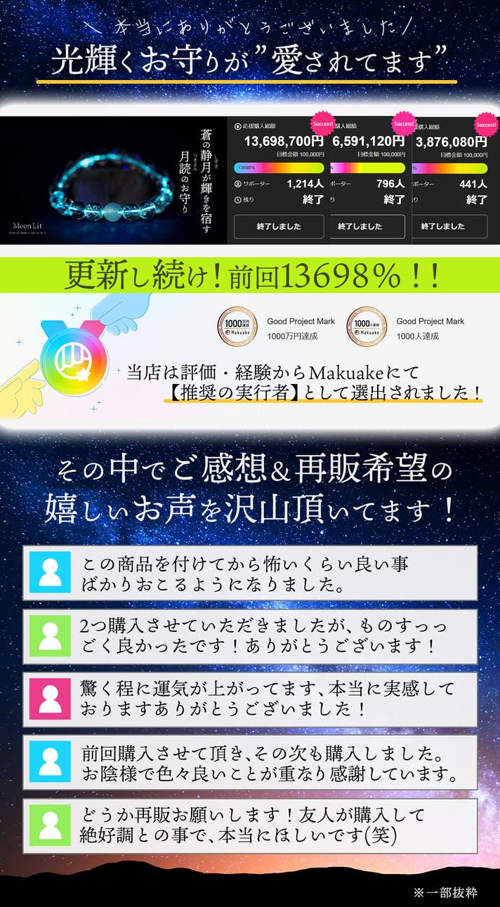 もちろん今回も!「第1弾”星”の腕輪」「第2弾”月”の腕輪」以上の幸運をお届けできるよう全力で取り組みました!応援のほど、本当によろしくお願いいたします!!