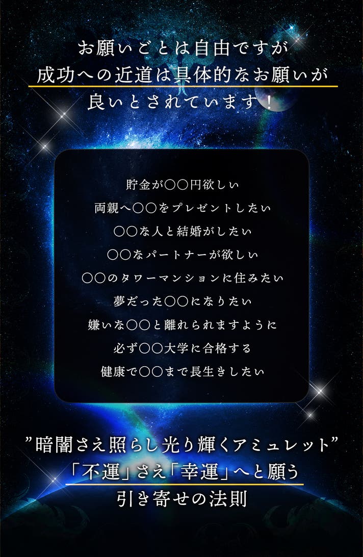 思いつく限りすべての夢をお願いしてください!強く願い強く想う事で、光を”まとい”想いが”育ち”祈れば”届き”願えば”叶う”とされています!