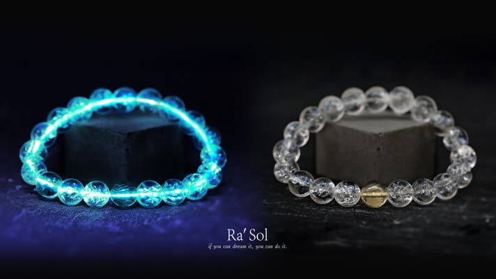 - 【特許技術申請済】太陽・月・星々のエネルギーを蓄え輝く”光の腕輪”