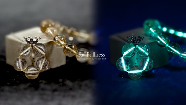 様々な光を集める特性を持つ本品は、UVライト(ブラックライト)等でより強力に輝き、長時間の美しい発光を実現します。特許申請を行いMakuakeで初めての挑戦となります。