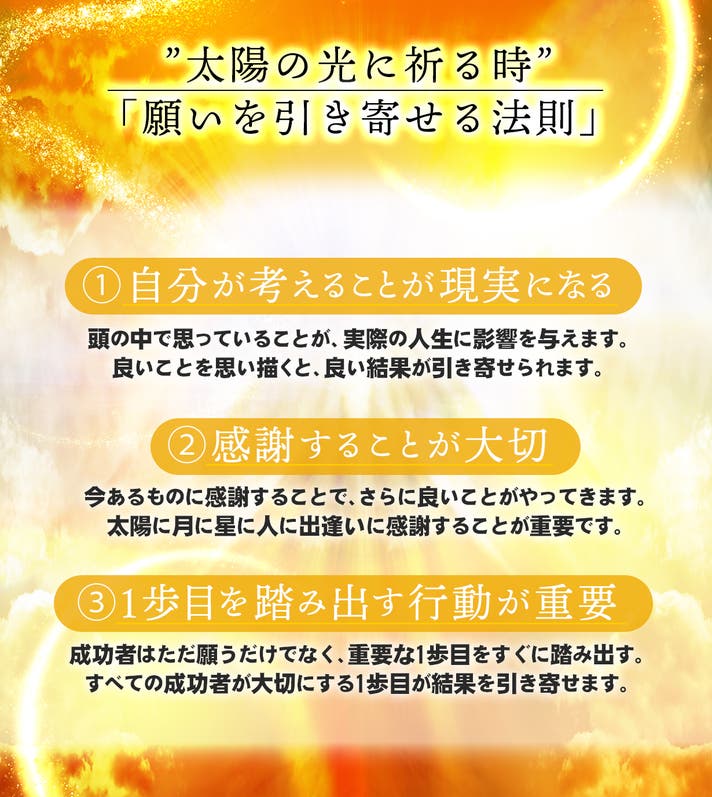- 【引き寄せの法則】黄金の太陽に「夢も成功も未来も」すべてをお願いしてください!