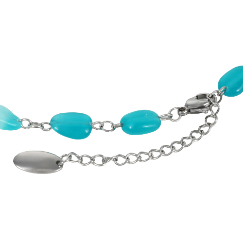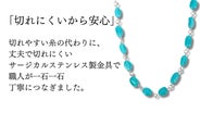 切れやすい糸の代わりに、丈夫で切れにくいサージカルステンレス製金具で、天然石を一つひとつ丁寧につなぎました。