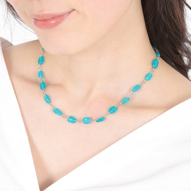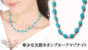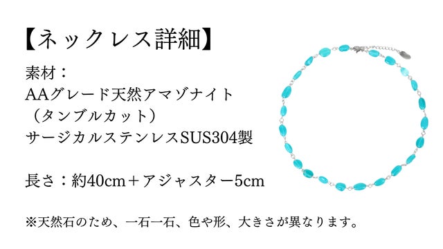 - 【希少なネオンブルーカラー】「宝石産業の本場」山梨県から 天然石 アマゾナイトネックレス