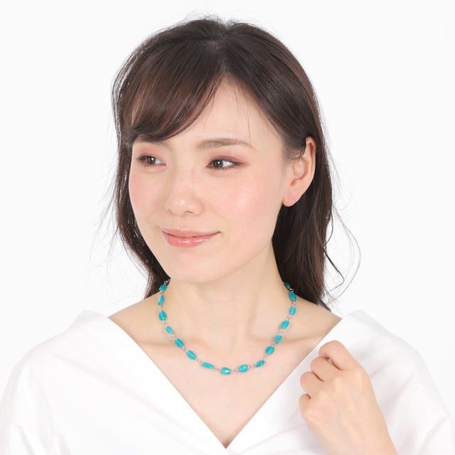 1. 宝石産業の本場山梨から ネオンブルーに輝く 天然アマゾナイトネックレス