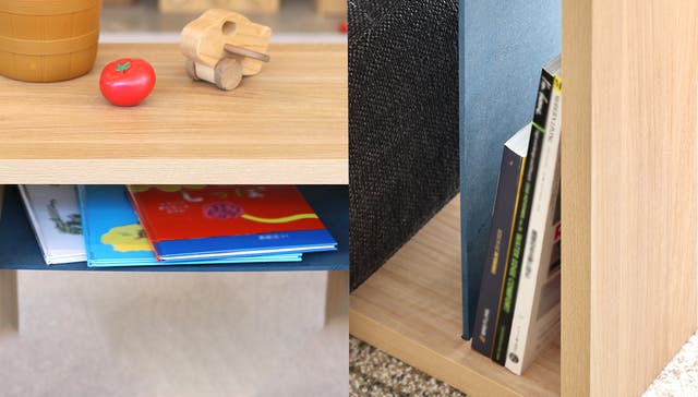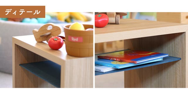 子どもと一緒に遊ぶときに、おもちゃや本を置いたり、仕切り板に絵本や雑誌を立てかけたて収納が出来ます。子どもが大きくなったら、パパママ用テーブルにも。