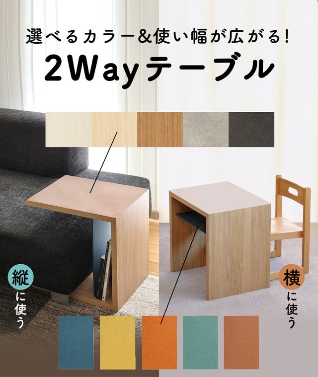 小さな工夫で使い方が広がる!自分の生活スタイルに合わせて使える、2wayテーブル。2Way以外にも自分だけの使い方を見つけて、使い幅を広げてみては?!