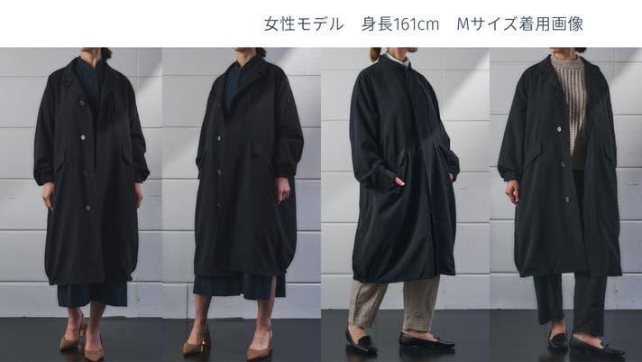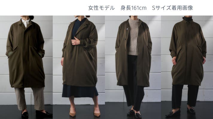 きちんと感を出したいときはテーラードで、カジュアルに見せたいときや寒さ対策にはステンカラーで。旅や出張、日常のスタイルに合わせて表情を変えられます。