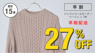 【早割】ジャパンウールセーター(ベージュ)早期配送