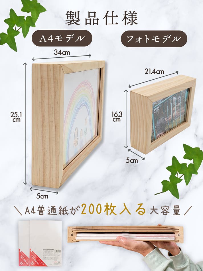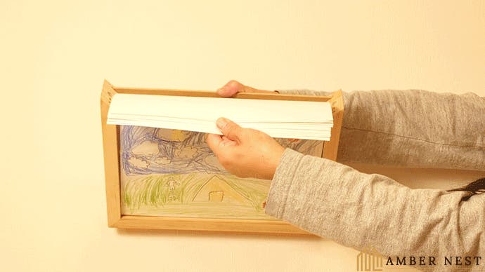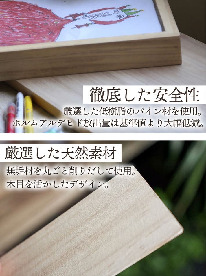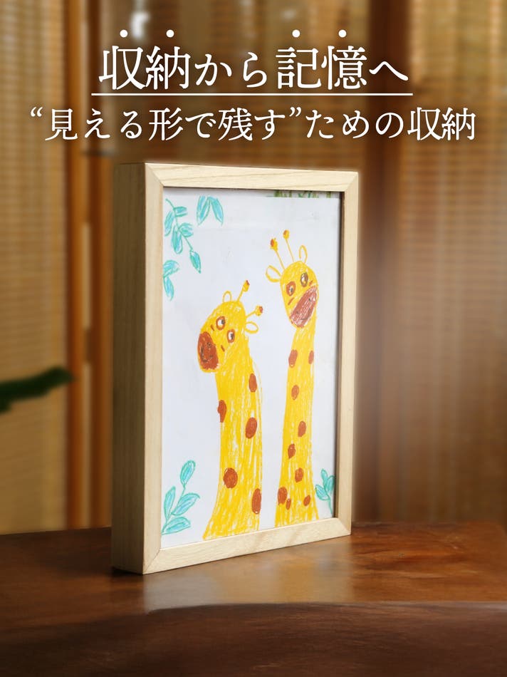 お子さまの作品や家族・ペットの写真を「飾りながら収納」できる木製フレーム。