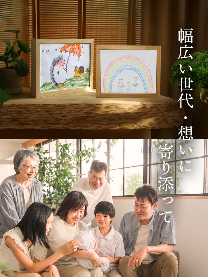 - 【想いを飾る】子どもの絵も写真も飾って残せる。家族や友人、ペットの思い出をタイムカプセルに。