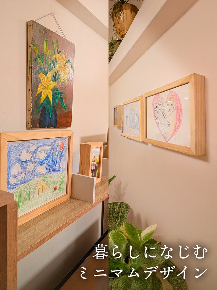 家族写真をリビングの棚に、子どもの絵をデスクの上に――