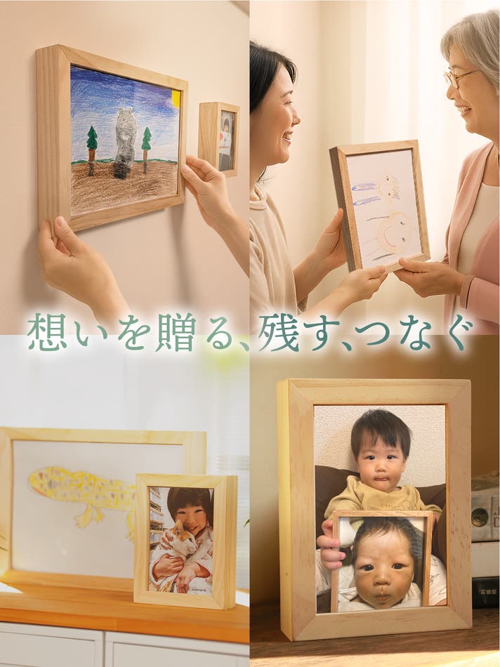 子どもの絵や写真、家族の思い出を大切に残したいという気持ちは、まさにこのフレームを生み出した原動力でした。