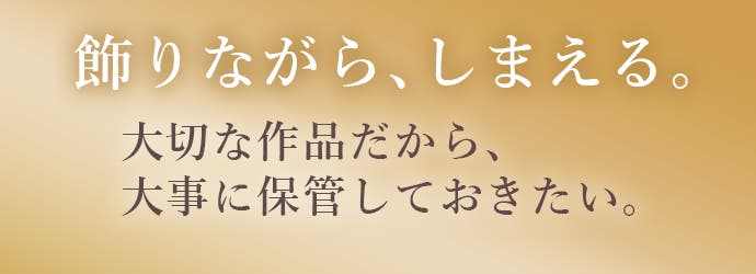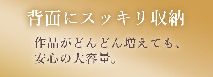 飾った作品をそのまま背面にスライド収納できるため、「飾りながら保管」ができます。