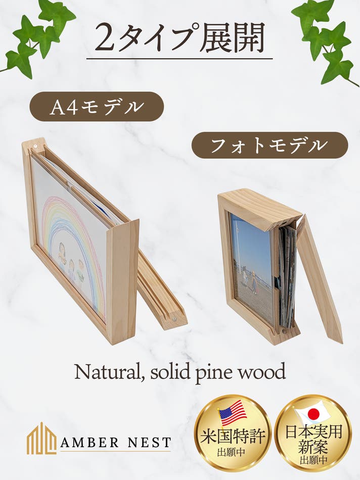 Amber Nest は、「飾った作品をそのまま背面へ収納できる一体型フレーム構造」について、アメリカで“Improved Display Frame with Storage” の名称にて特許を出願中。日本でも実用新案登録を出願しています。