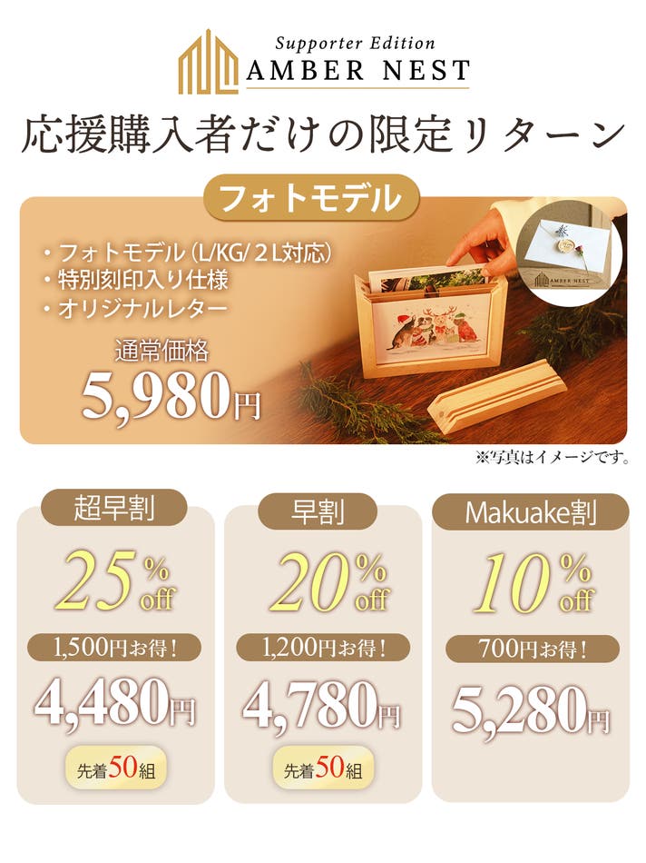 本プロジェクトでは、Makuake限定の「Amber Nest Supporter Edition」をお届けします。