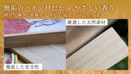 厳選した低樹脂のパイン材を使用し、ほのかに漂う木の香りが心地よく広がります。