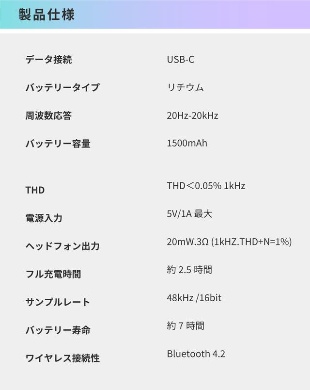 - スマートフォン、PC、タブレットと対応端末が広範囲に互換性あり。多機能かつサイズもコンパクト。