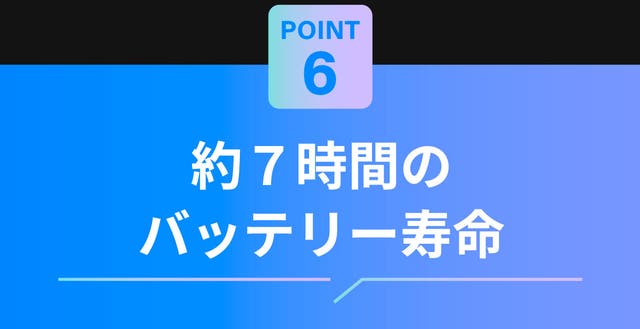 長時間の放送でも安心。一回の充電で約7時間の使用が可能。