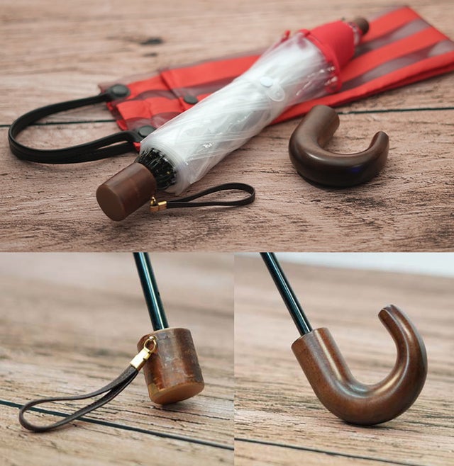 享保六年(1721)創業、昭和27年、世界に先駆けてビニール傘を開発、3年前のクラウドファンディングの応援で実現した念願の折りたたみ透明傘が、改良を加え、持ち易い差し替え可能な木製曲がり手元も付いて、バージョンアップ。2サイズ、4色からお選びいただけます。