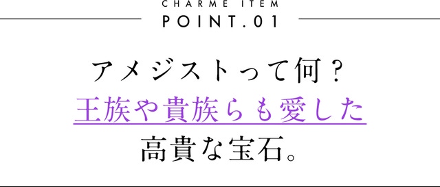 深い紫色で神秘的な輝きを放つ宝石「アメジスト」は、王族も愛した水晶の中でも非常に美しい宝石。