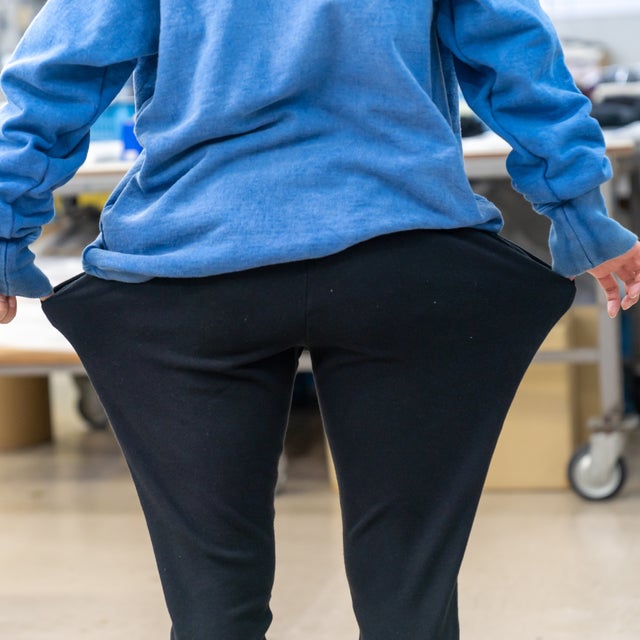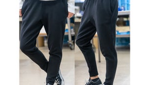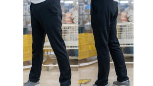 伸びるストレッチ素材なので楽。センターラインがありシルエットが綺麗なストレートパンツなので、スラックス感覚でリモートワーク、部屋着、トレーニング、スポーツ、お散歩に便利な逸品。