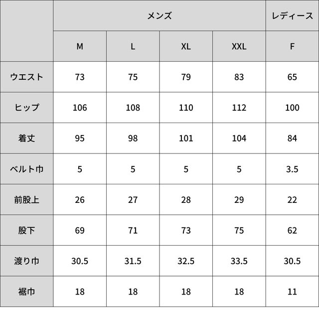 (生地加工・染色方法の影響で、個体差がありサイズ表の数値が前後する場合がございます。あらかじめご了承ください。)