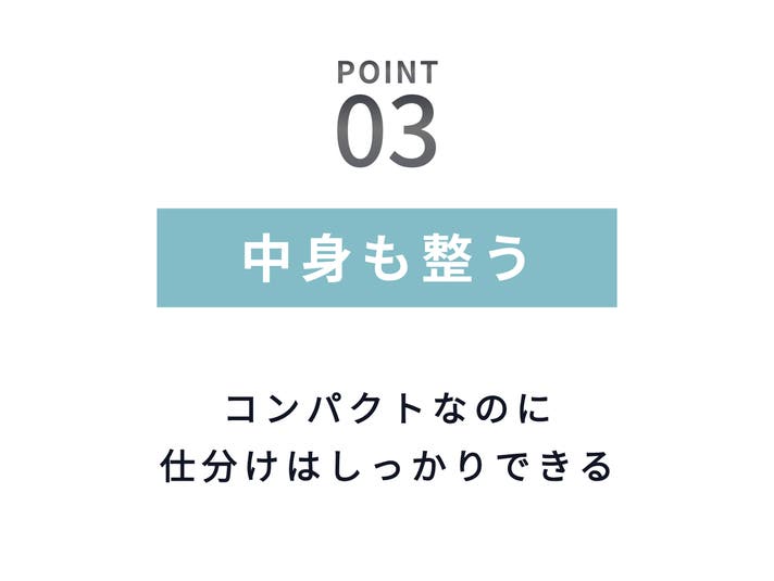 - 《仕分け上手》コンパクトに中身もすっきり整う。荷物の定位置を決めて、スタイリッシュに。