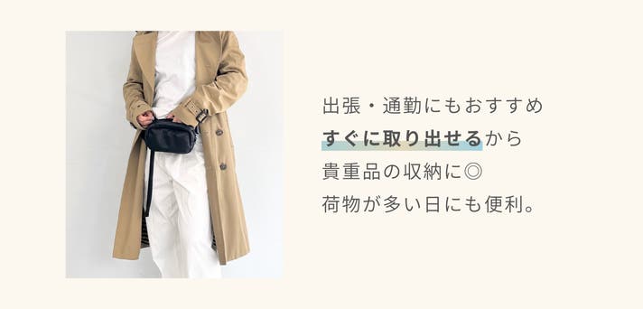 財布やパスポート、スマートフォンも整理しやすく、荷物が迷子になりません◎物を入れても、形が崩れず、スタイリッシュなまま。