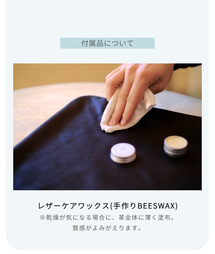 皮革製品は天然の素材の性質上、シワ、ムラ、シボ、重さに個体差がございます。