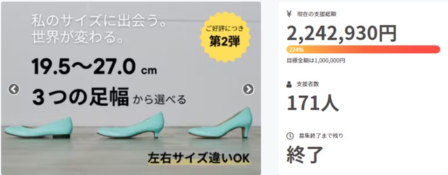 国内クラウドファンディング「CAMPFIRE」では、過去2回のプロジェクトが行われ、 累計550万円、690足を超えた人気商品です。