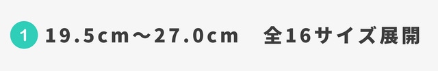 女性の足サイズのほぼ100%をカバーする、19.5cm~27cmの全16サイズをご用意。