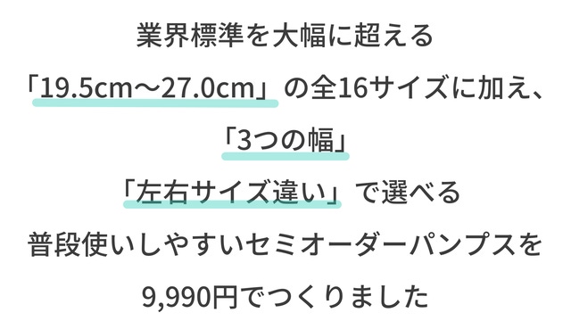 一人でも多くの方が自分にぴったりなパンプスに出会えるよう、私たちはこれからも精一杯取り組んでいきます。