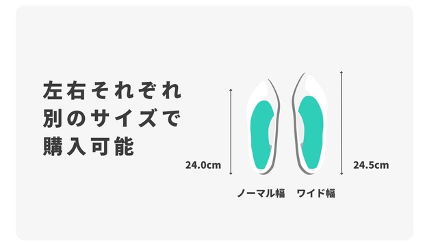 ※左右サイズ違いは左右±0.5cmの範囲内でお選びいただけます。
