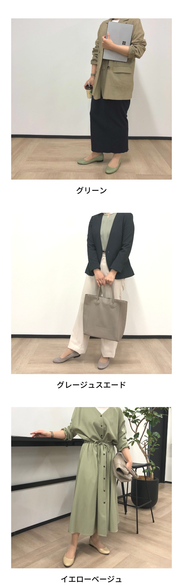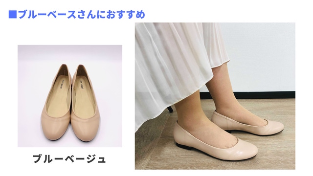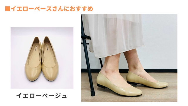 イエローベージュは黄みがかったベージュです。足なじみもよくベーシックなカラーのお洋服との相性抜群です。