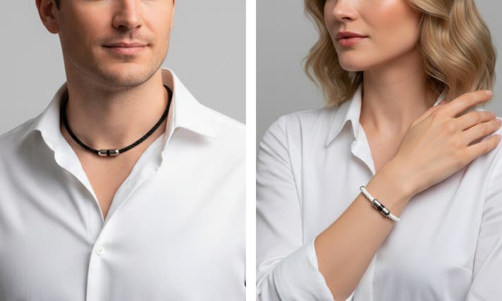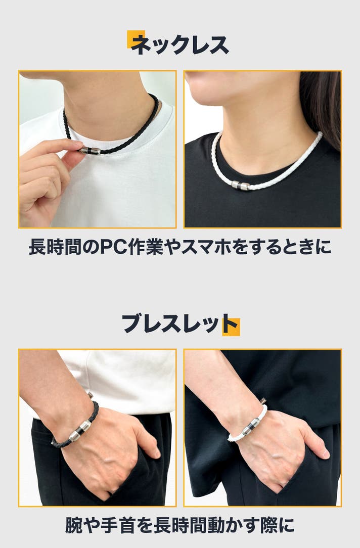 ANAPAブレスレットとネックレスには微細電流が通っており、電源も充電もする必要もなく使用できます。