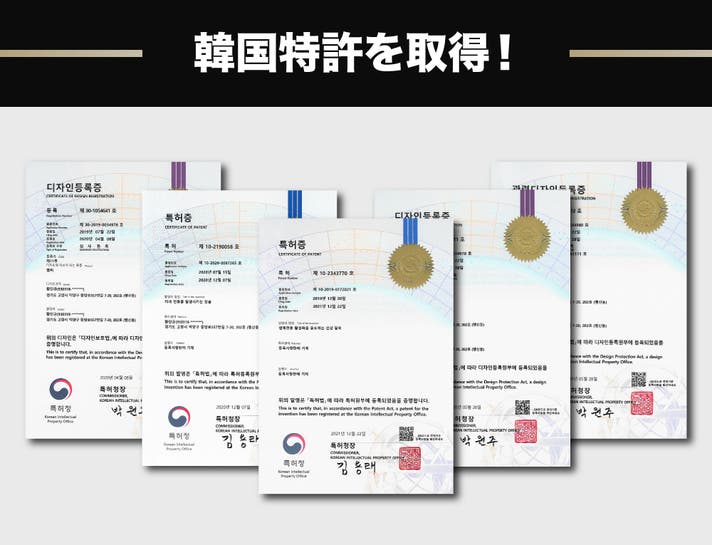 この製品は韓国でのデザインや製品に関する特許を取得しています。