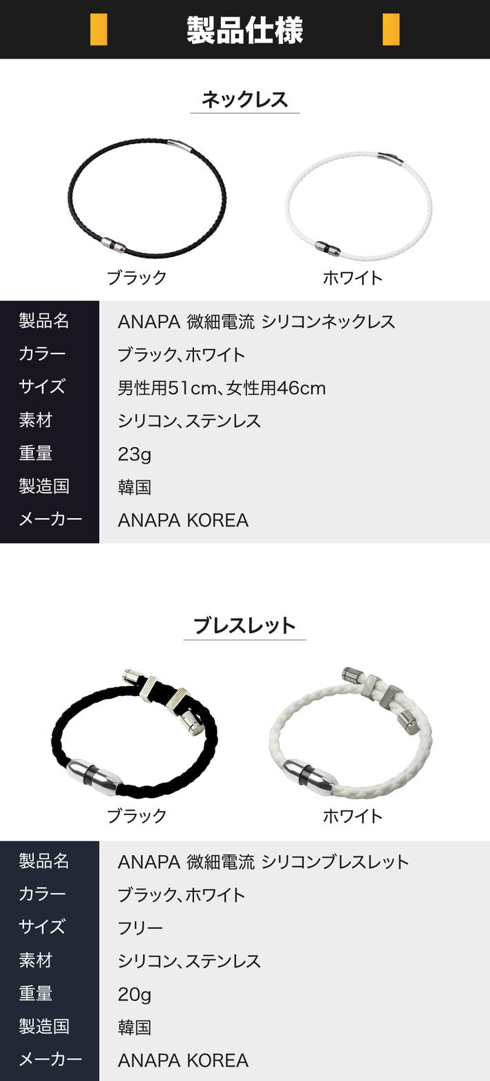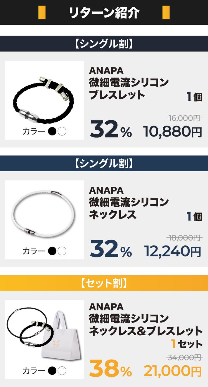 【セット割】ANAPA微細電流シリコンネックレス&ブレスレットの1セット