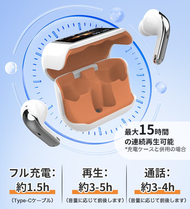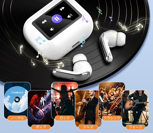 1.57インチの大画面タッチスクリーンにより、音楽再生や通話、モード切替などの操作が直感的に行えます。視覚的に確認しながら操作できるため、より楽しく便利にイヤホンを使うことができます。