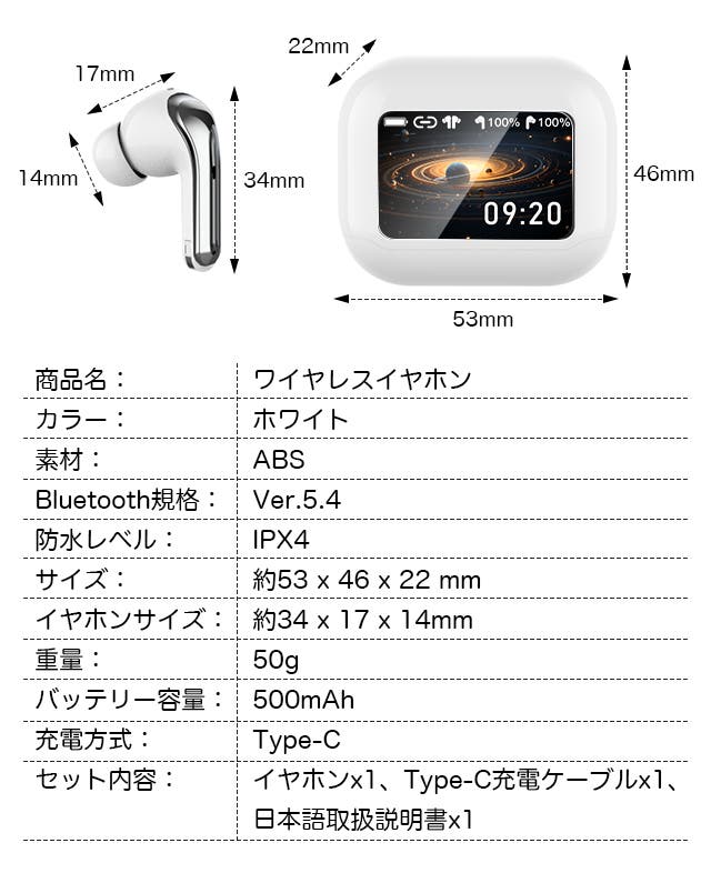 セット内容:イヤホンx1、Type-C充電ケーブルx1、取扱説明書x1