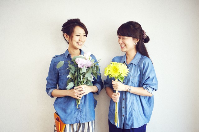 東京・戸越銀座近くのアトリエを拠点に、パートナーの金美賢(きむみひょん) ※写真右 と共に制作やフラワーデザイン教室を行っています。また、都内IT企業様を中心に法人様向けワークショップも定期的に開催させていただいています。