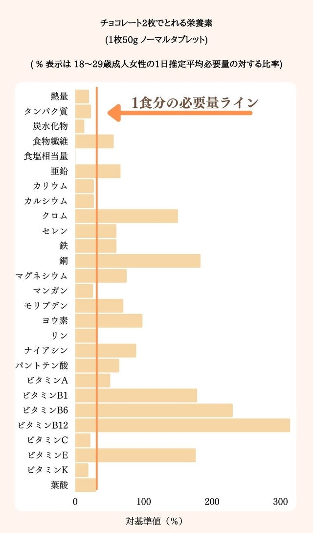 タンパク質から、ビタミン、ミネラルまでまんべんなく、そしておいしく摂ることができるチョコレートです。