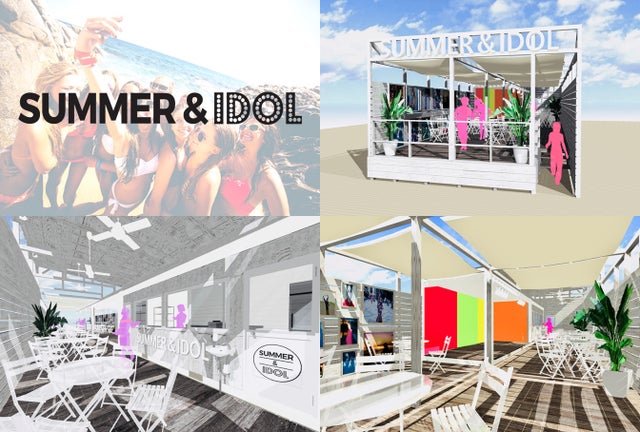 「SUMMER&IDOL」は、「&IDOL」プロジェクトの第1弾として、アイドルを卒業した6人で実行委員会を設立し、自分たちでプロデュースした空間デザイン、オリジナルフード&ドリンク、イベントコンテンツなどを提供するビーチカフェです。