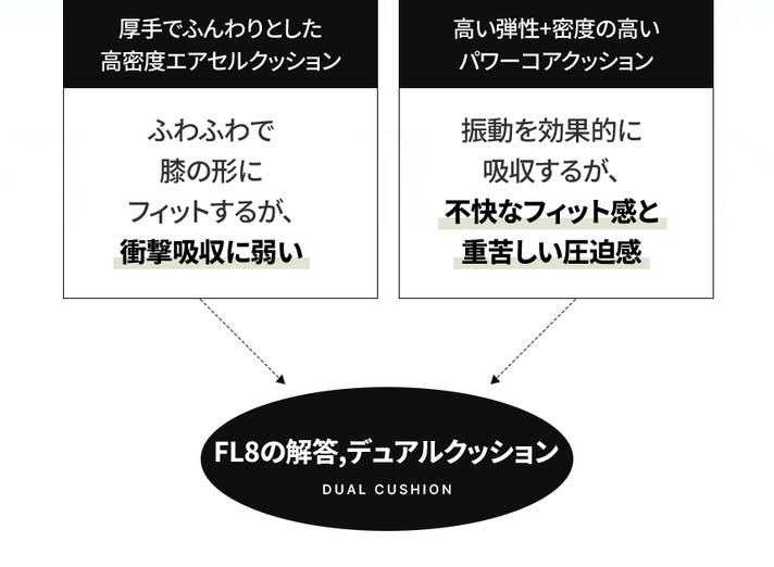 2 ハードクッション ▶ 残った振動をもう一度吸収し膝の揺れを安定的に支持