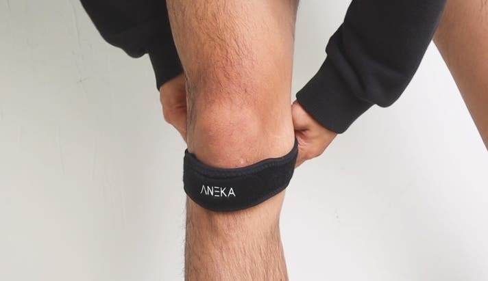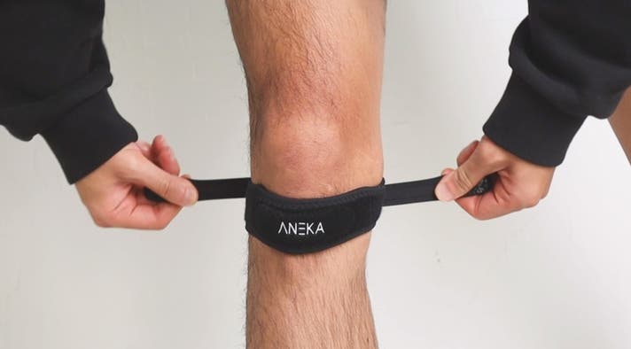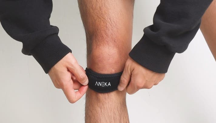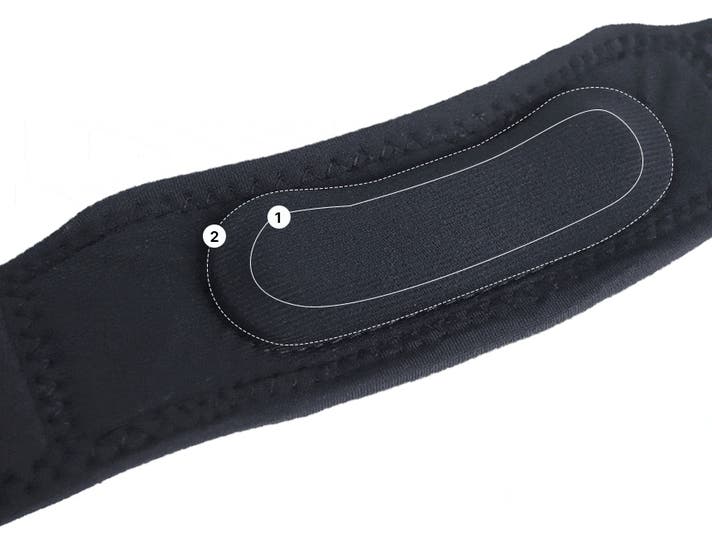 1. 膝下の膝蓋腱にクッションパッドがあるように引っ張ってください。