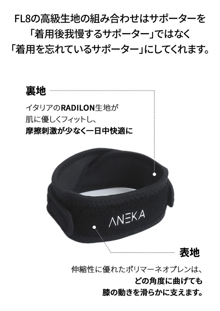 FL8膝サポーターては、この質問から始まったアネカの真心を込めた掛け物です。 動きを妨げずに必要な支持力は逃さない構造、長時間着用しても快適さを失わない素材と設計、そして一日の重さを軽くしてくれる安定感まで- 私たちは一人の「好きな人生」を守ってくれるサポーターを作ろうとしました。