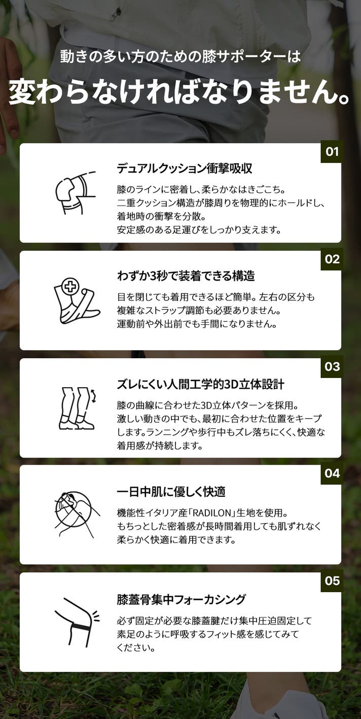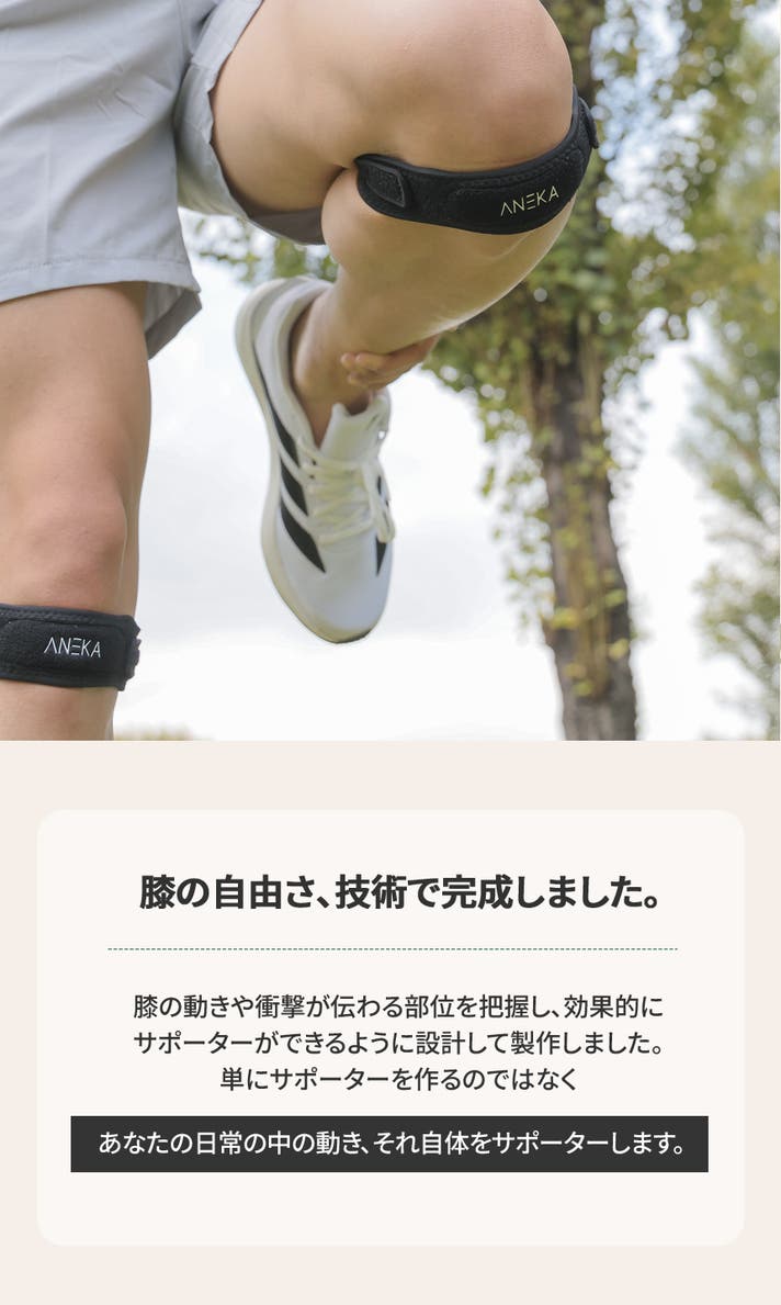 単なる膝サポーターではなく、歩いて、座って、働いて、好きなことを長く続けられるあなたの動きのパートナーになることを願っています。