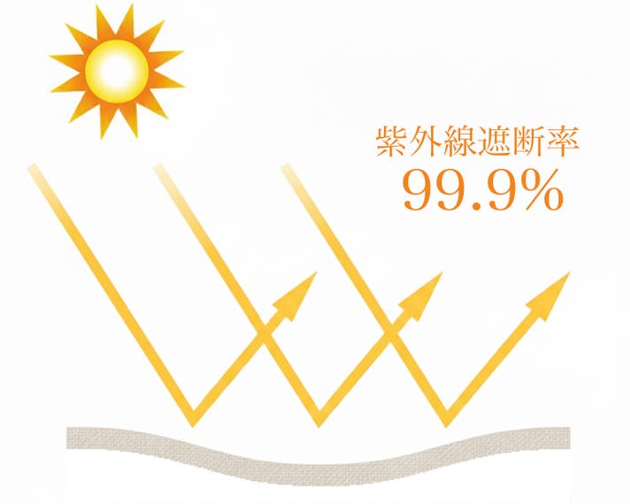 紫外線を通しやすい「白色」で検査したところ、紫外線遮断率は「99.9%」という極めて高い数値が計測されました。
