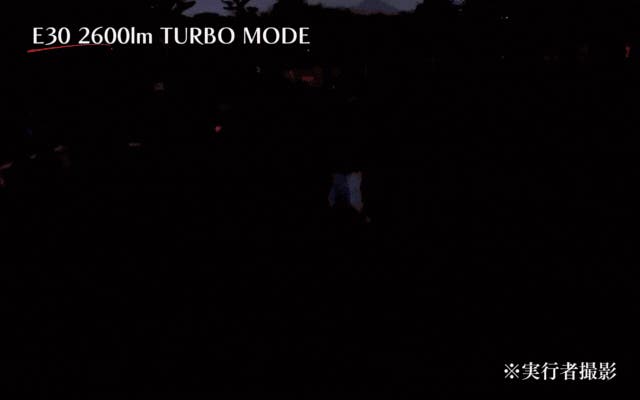広角2600lm×7500Kのターボモードは圧倒的な照射力を誇ります。