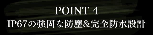 A:防塵・防水性能はIPX67を満たしており日常の雨や雪はもちろん、水没にも耐えうる性能を有しています。ただし水中で使用することを想定したものではありません。
